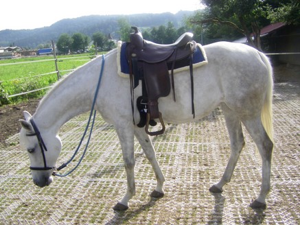 Bald darauf kaufte ich einen schweren und wunderschönen Westernsattel, einfach so im Internet. (Ja, sie dürfen jetzt den Kopf schütteln, wenn sie das auch nicht sooo toll finden). Er passte einigermassen und Esméralda wurde behutsam aufs Reiten vorbereitet. Ich machte mit, weil ich dachte: "Das gehört dazu, wenn du ein Pferd hast." Aber ich war nicht mit dem ganzen Herzen dabei und fand es nicht schön, mein Pferd gesattelt vor mir zu sehen. Dass ich mich nicht traute, das auszusprechen, kam daher, dass es alle so machten, es war normal. Ausserdem war ich bei weitem keine Expertin und, wie ich glaubte, auf die Meinungen Anderer angewiesen, um meinen Weg zu finden.